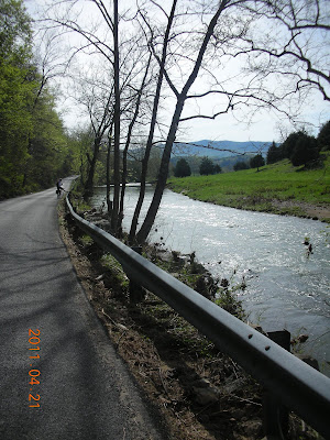 The scent of lilac in the air, dogwoods, redbuds and azaleas in bloom made this ride pure joy. We biked along the South River and Broad Creek much of the way. We passed a very nice waterfall, but since we were going uphill, I didn’t take a picture! We stopped at Niko’s Grill in Lexington, VA for lunch and it was a treat to eat something other than peanut butter and marshmallow.