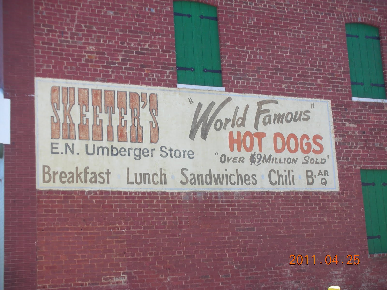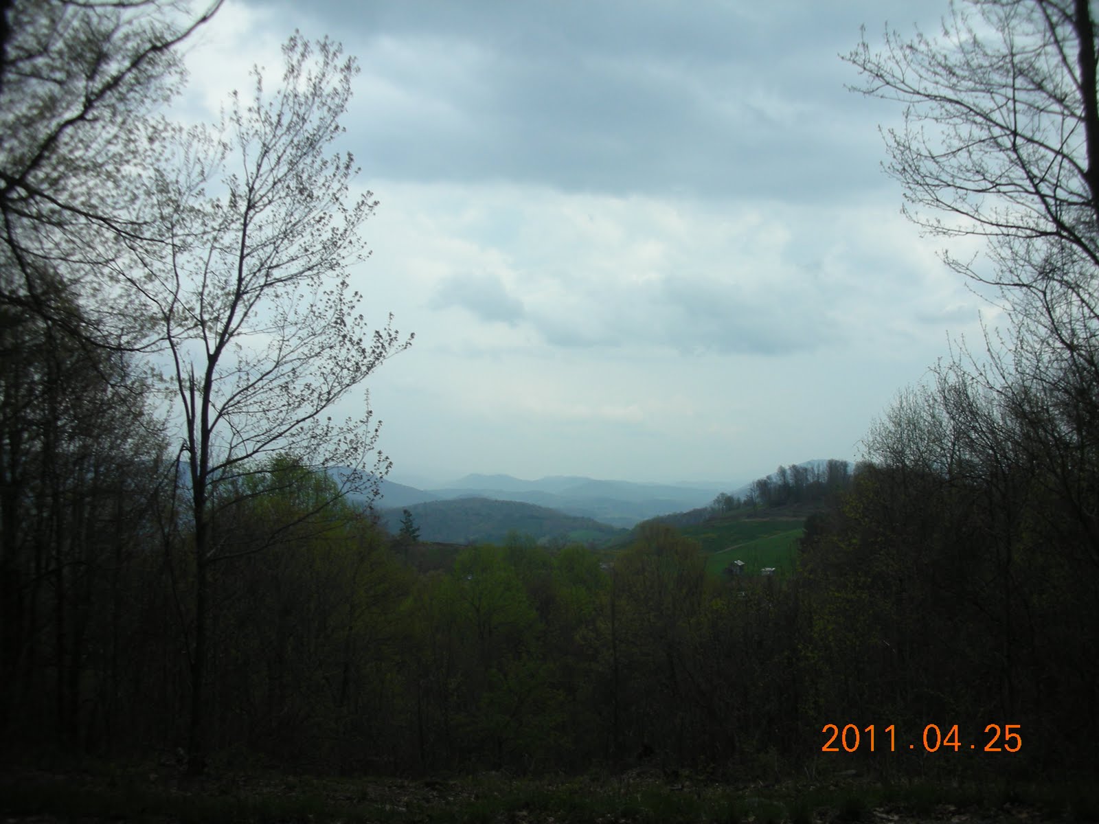 Today was “back to nature” day. We saw a brand new foal as it tried to get to its feet for the first time. The mare was just standing there while the farmer was helping the little one get up. We also saw dozens of newborn calves at several different farms. No wonder the song says “get along little doggies” because they look just like little dogs. We came around a corner and 3 of them were in the front yard of an abandoned house. When they saw us they took off looking for their mamas. While not back to nature exactly, we did eat a “world famous” hot dog in Wytheville, VA. We were looking for coffee for Vincent and the woman we asked directed us to Skeeters. We didn’t end up getting coffee, and while I don’t eat hot dogs much, this one was pretty darn good. We got the works, including chili, coleslaw and onions for only $1.95.