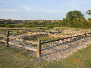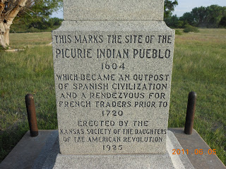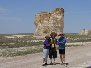 We spent the day at Scott Lake State Park and explored the site. It was over 100 degrees for most of the afternoon, so we weren’t able to hike at all. We did visit the Monument Rocks which were carved from the floor of a vast inland sea over 80 million years ago. They stand over 70 feet in height. We were able to walk over to the pueblo ruins at the El Cuartelejo site since they are located in the state park. The ruins were discovered in 1899 and all that remains now are portions of the stone hearths, two sections of the outer wall and several post holes. We also went to the Keystone Gallery, a small fossil museum and art gallery run by Chuck Bonner and Barbara Shelton. Chuck’s father, Marion Bonner, discovered a near complete short-neck Dolichorhynchips in 1955, and the entire family was very involved in fossil hunting. Chuck was giving a lecture to a group of young fossil hunters while we were there. Quite an interesting shop and I love their slogan: Conveniently located in the middle of nowhere.