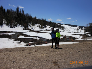 We climbed 10 miles to the top of Togwotee Pass (9,658 feet elevation). It was not a bad ride because the wind was calm today and it was much warmer than yesterday. We were definitely glad we waited. Yesterday, we met a couple who came over the pass and they were dressed as though they had bicycled through the Arctic. They had gloves, hats, long pants, and shoe covers on. With the winds yesterday, it probably was a lot colder. As a result, Vincent wore his winter bicycling gear and had 3 layers on. When we were about 5 miles into the ride, he began removing layers. I put the clothes he took off into the backpack and noticed he had his fleece, his fleece hat and his gloves in there. Guess he thought it was going to be really cold. Although long, the climb was much easier than the climbs we did in the Appalachia Mountains. While in Dubois, I talked to one bicyclist going west who said he felt bad for the bicyclists riding east who would warn him about the climbs to come. He said they were in for a shock when it came to the Appalachia climbs.