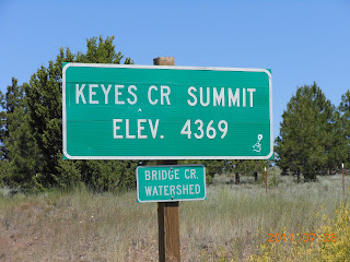 I bicycled over Keyes Creek Pass today and kept riding until I ran out of water about 4 miles from the top of Ochoco Pass. Bob and I had planned to meet in Mitchell, about 39 miles from Dayville, but the road into the city was closed. So I decided to just keep riding until I saw Bob on the route. I finally stopped and waited when I ran out of water. He came by about 30 minutes later and all was fine. There was a nice breeze as I waited for him which helped to combat the 96 degree temperatures.